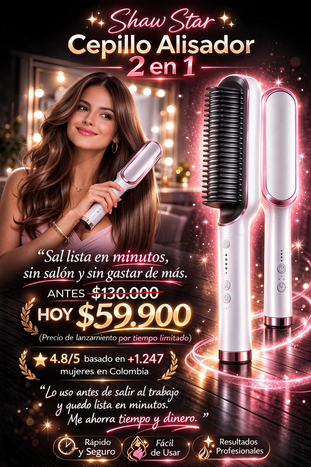 Es práctico y rápido. En pocos minutos mi cabello queda suave, brillante y sin frizz, incluso en días húmedos.